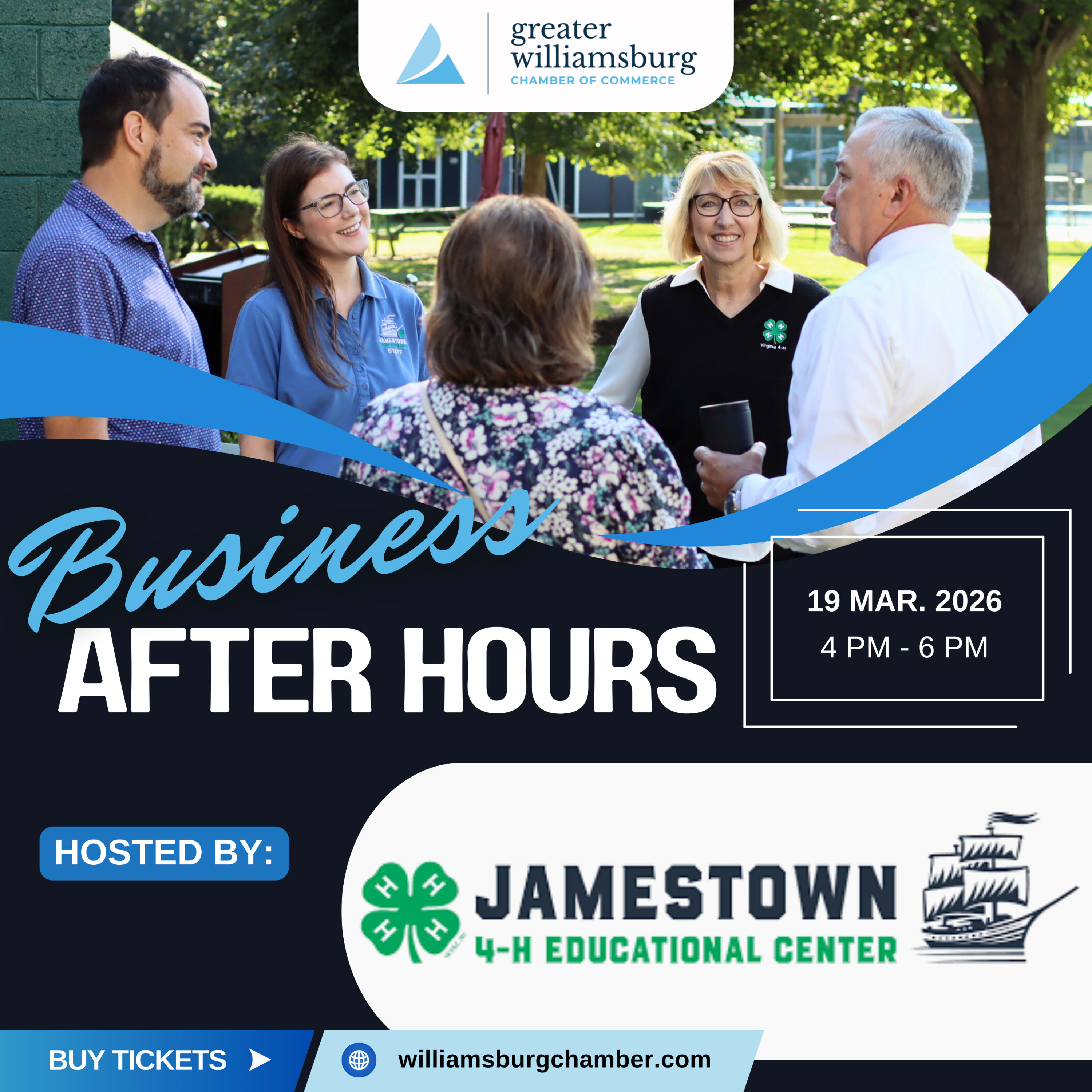 Join the Greater Williamsburg Chamber of Commerce on Thursday March 19th for our next Business after hours, hosted by the Jamestown 4-H Educational Center! The team at Jamestown 4-H is excited to highlight Jamestown 4-H Educational Center as a community resource and event venue while sharing the impact of their youth development, educational, and leadership programs. They aim to strengthen relationships with local businesses and explore opportunities for partnerships, sponsorships, and corporate team-building retreats.