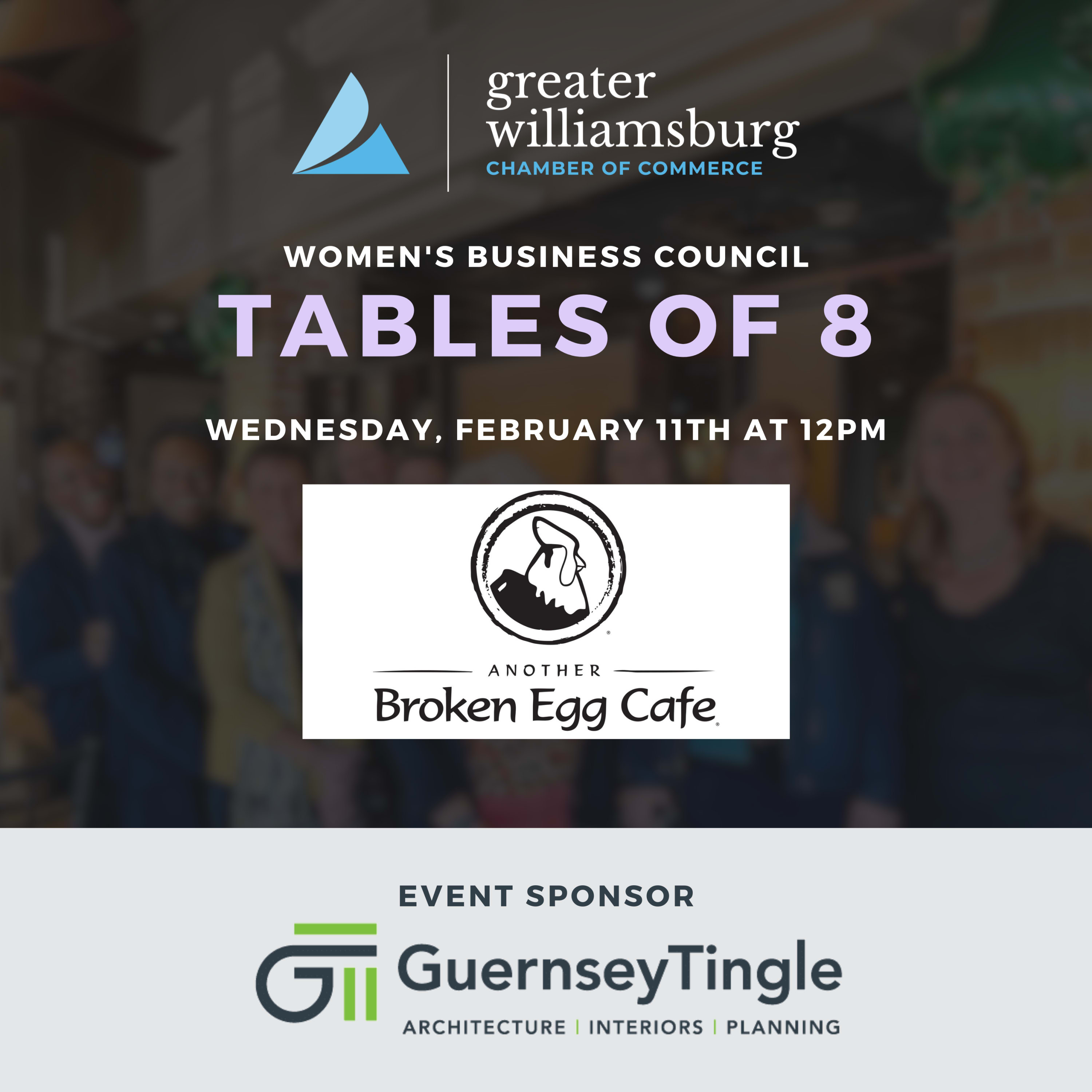 Join the Women's Business Council for our Tables of 8 Luncheon sponsored by GuernseyTingle, where you can connect with other women in the community for a meaningful discussion. This intimate setting, limited to eight women per table, is the perfect space for authentic conversations and building new connections.