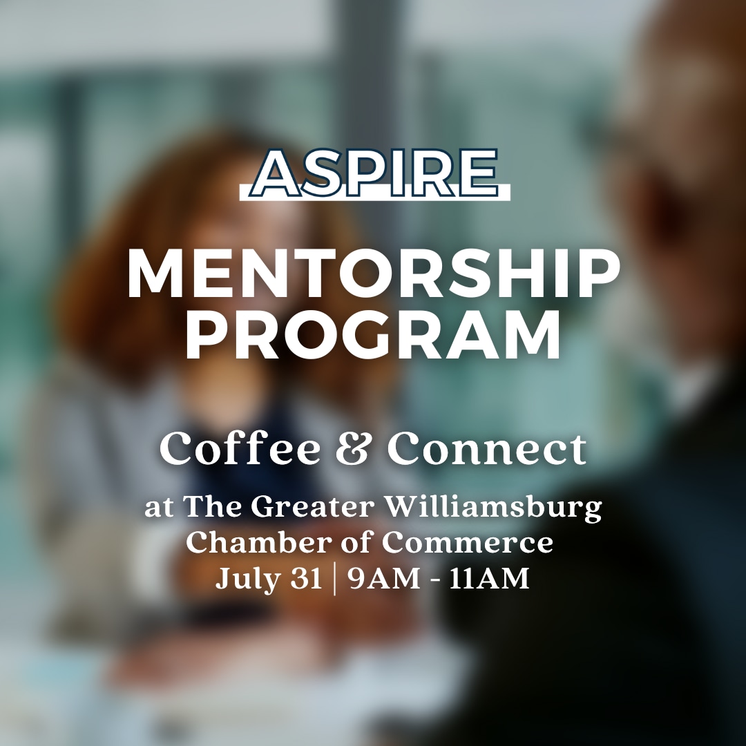 The ASPIRE Young Professionals are hosting a Coffee & Connect networking event on Wednesday, July 31st from 9 to 11 AM at the The Greater Williamsburg Chamber of Commerce! Coffee & Connect is part of ASPIRE's Mentorship Program, connecting young professionals of the Chamber with local business leaders and executives for career development and guidance.