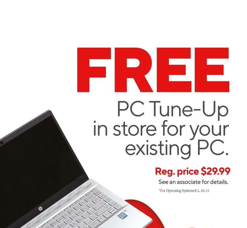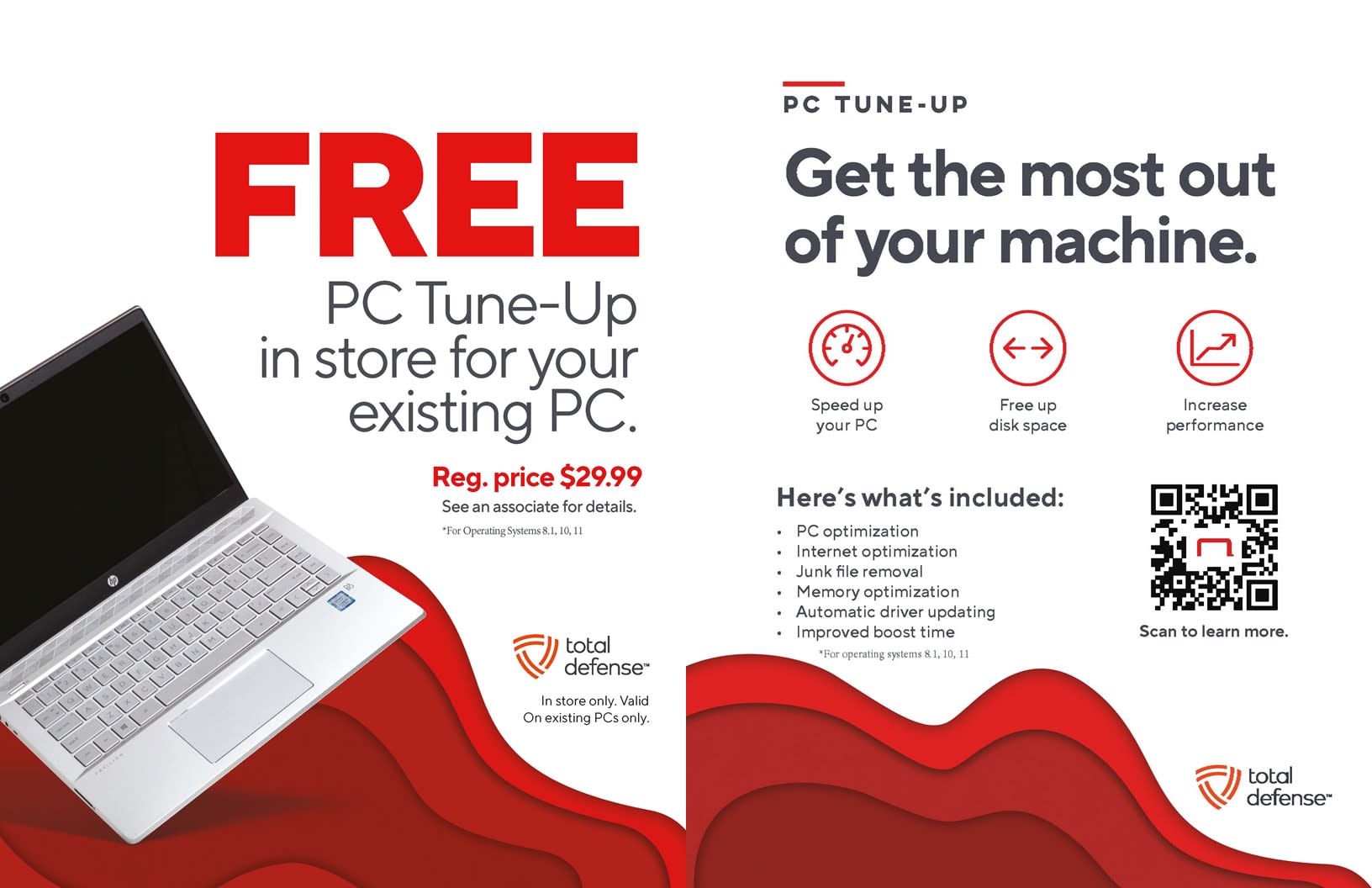 Get the most out of your machine. FREE PC Tune Up in store for your existing PC. Speed up your PC, free up disk space, increase performance. Here's what's included:
