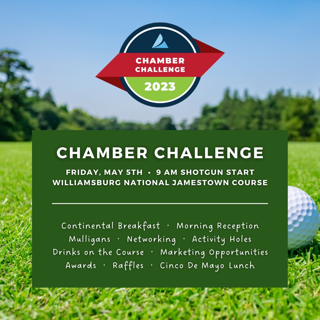 The 2023 Chamber Challenge Golf Tournament presented by C&F Bank will take place Friday, May 5th at the Williamsburg National Golf Club on the Jamestown Course. Celebrate Cinco de Mayo with a day on the links!