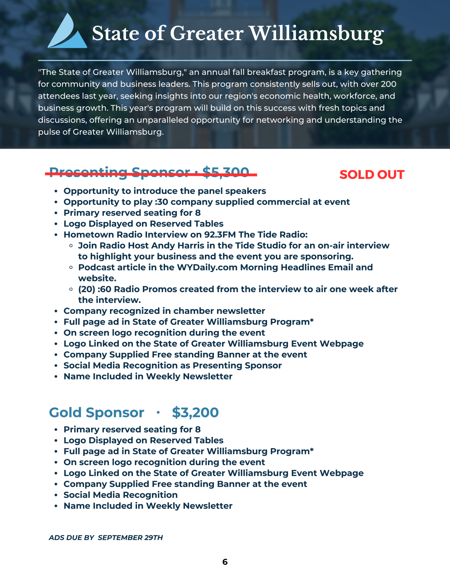 Don't miss this opportunity to gain valuable knowledge and connect with the leaders shaping Greater Williamsburg's future. Register online today to secure your seat!